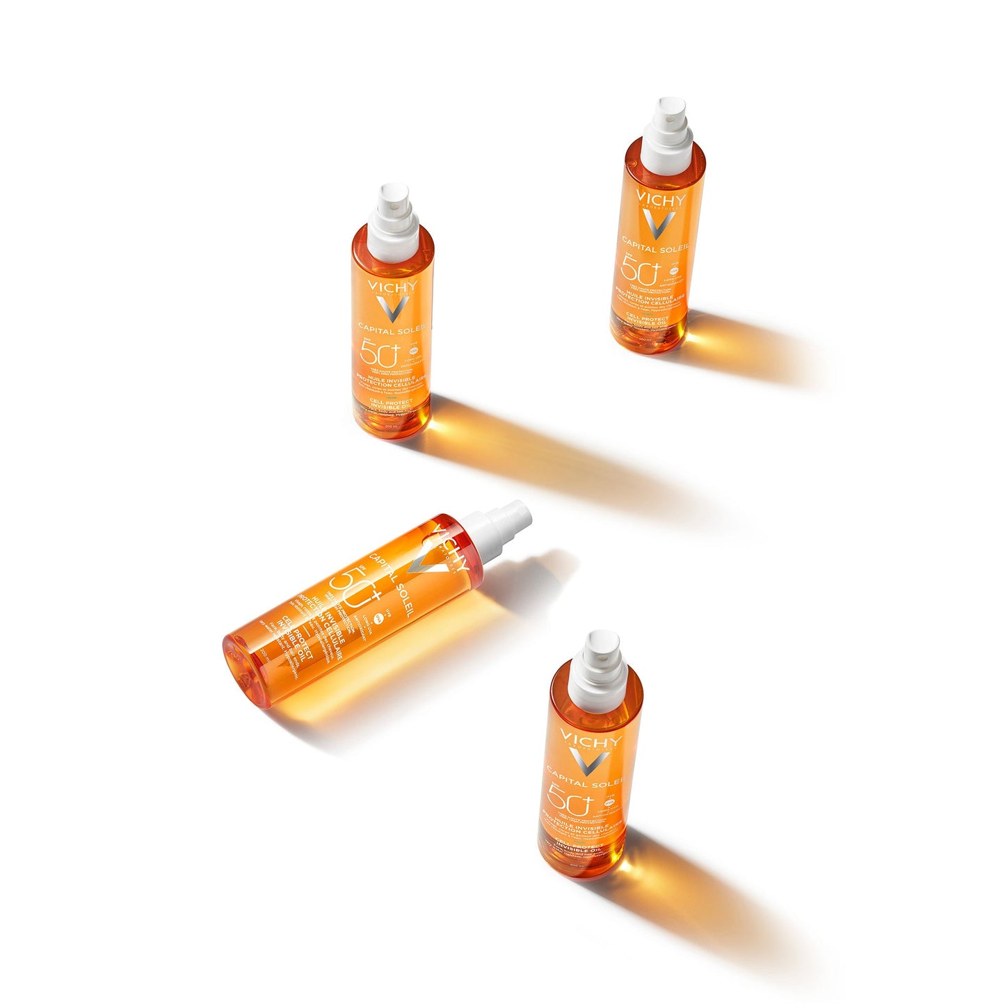 Vichy Capital Soleil Cell Protect Oil SPF50 has an ultra-light formula with multi-patented Netlock technology, forming an advanced UV protective film with a uniform finish that is resistant to water and sweat.